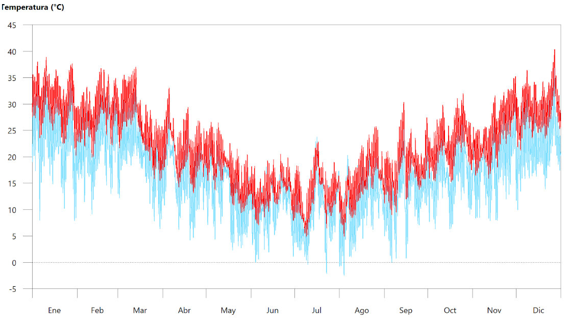 A través de las curvas de simulación interior, podemos ver cómo trabaja cada uno de los recintos del edificio e intervenir para mejorar las condiciones. Este informe cuenta con los valores de consumo energético en la etapa inicial y mejoras, pudiendo ponderar la disminución del mismo.